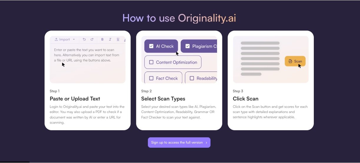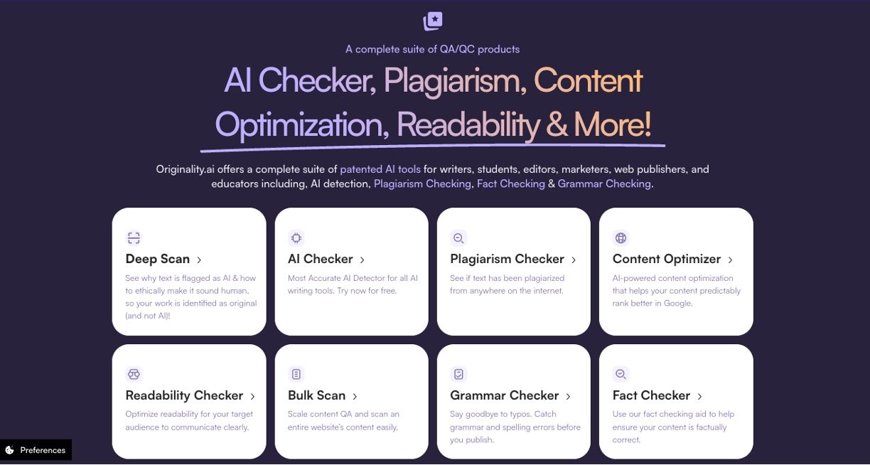 Originality AI is a user-friendly suite of AI tools that helps writers, students, teachers, and marketers check if content is written by humans or AI like ChatGPT, Claude, or Gemini. It spots AI-generated text with top accuracy, catches plagiarism from the web, and includes extras like fact-checking and grammar fixes to make your work shine. No tech skills needed – just paste text, upload a file, or scan a site for quick, clear results that build trust in your writing.
