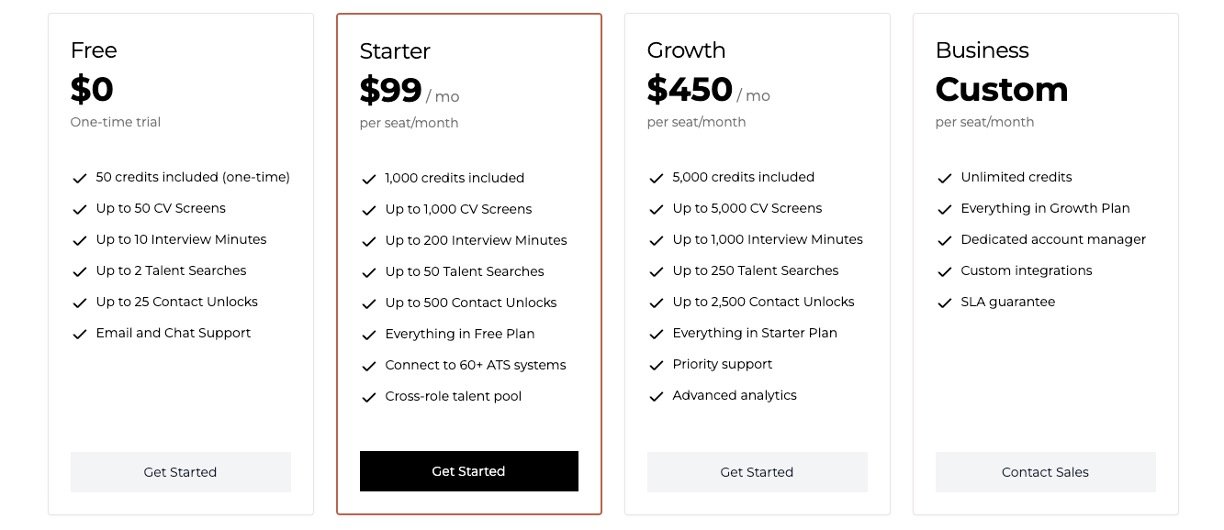 • AI interviews that adapt and score talent.