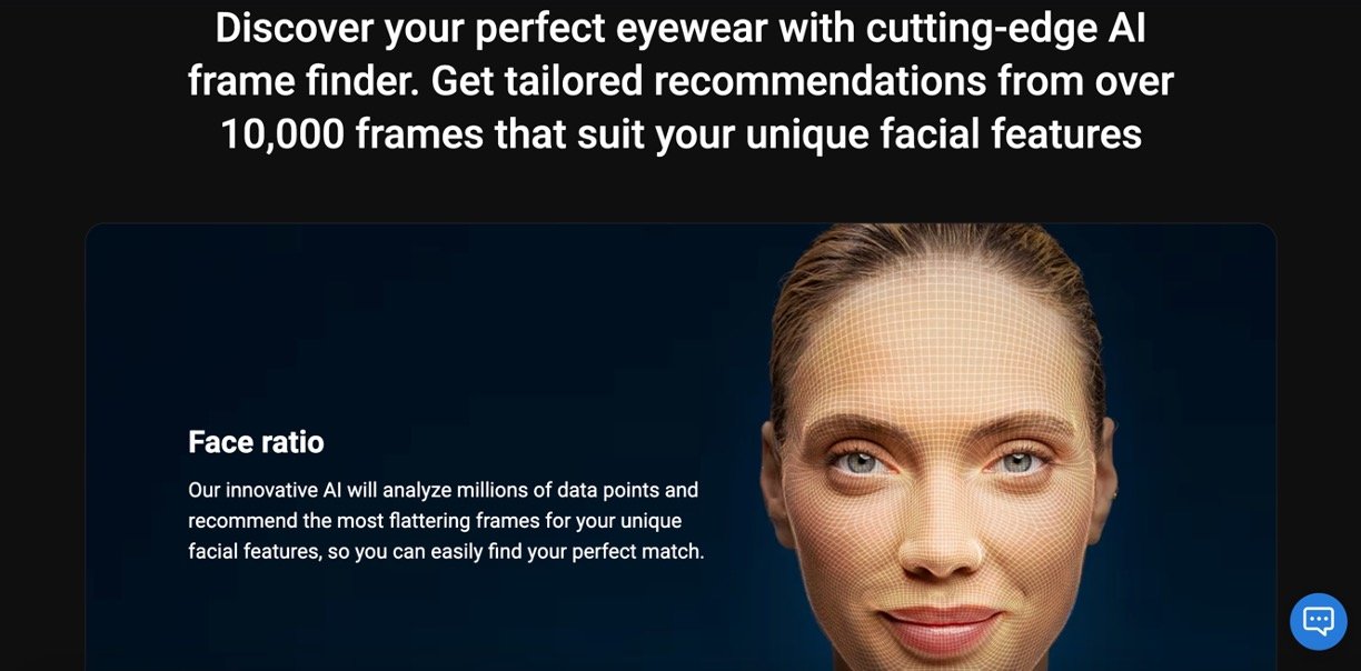 Extensive Frame Catalog: Provides personalized matches from over 10,000 glasses including sunglasses and prescription eyewear.