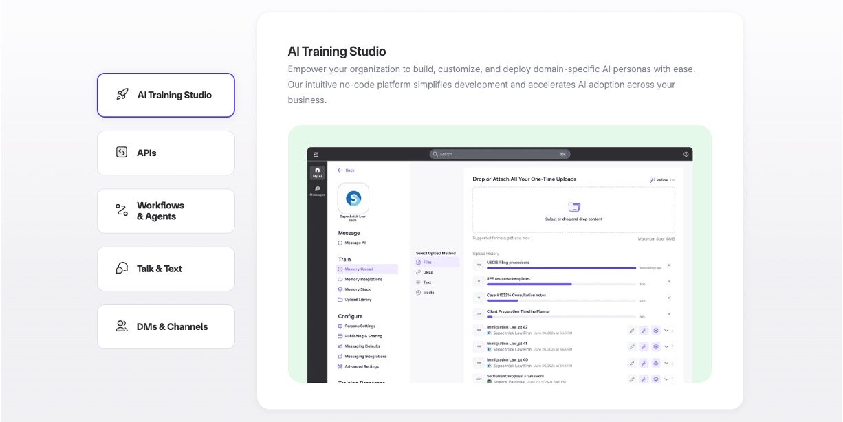No-code builder to create, customize, and deploy domain-specific AI personas and agents without needing engineering expertise.