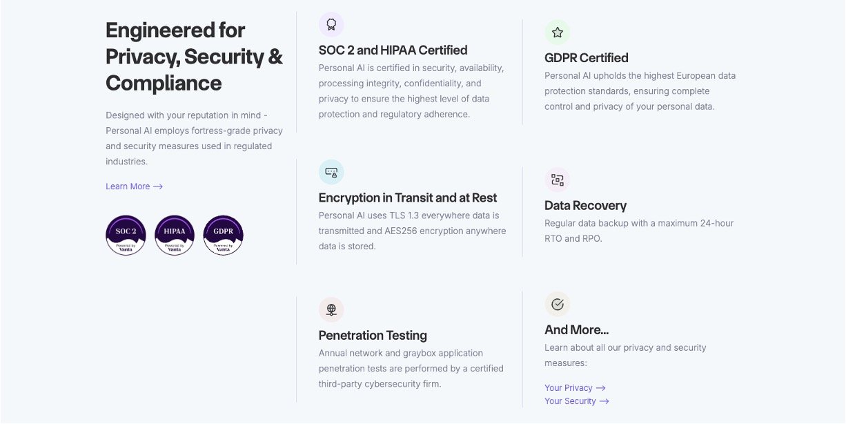 Personal AI is a distributed edge AI platform that lets organizations create domain-specific AI personas powered by small language models (SLMs) instead of large, general-purpose models. It is engineered for highly accurate, memory-based responses and can be deployed in private, public, hybrid, or edge environments to meet strict data security and compliance needs. With a no-code interface and integrated “memory fabric,” it connects enterprise data to adaptive AI systems so teams can automate communication, support, and decision-making with full control over their information.