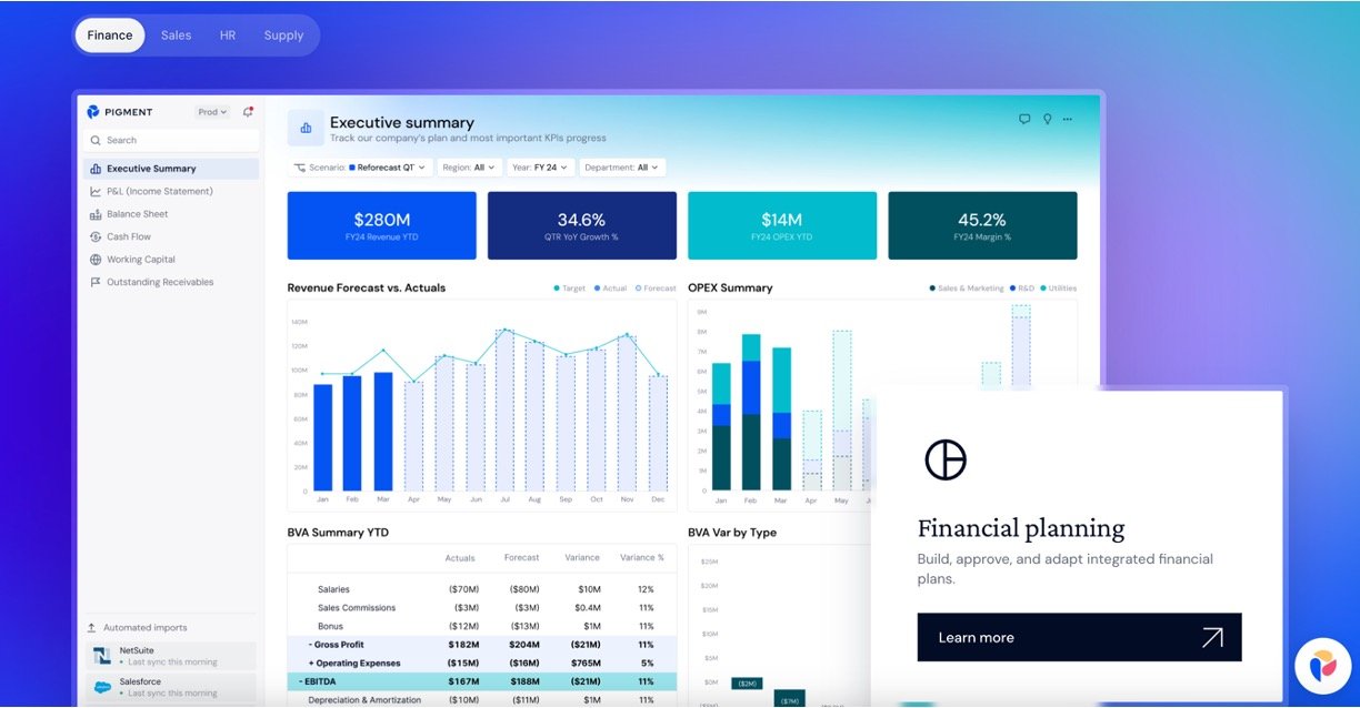 Pigment is an all-in-one planning platform powered by agentic AI, helping teams in finance, sales, HR, and supply chain analyze data, build models, and create plans that adapt to real-world changes. It connects your existing tools like ERP systems and spreadsheets into a single hub, where AI agents handle routine tasks so you focus on big decisions. Trusted by companies like Unilever and Coca-Cola, it makes complex forecasting simple and collaborative for everyone.