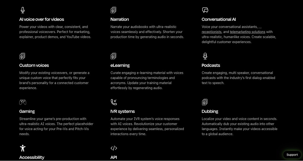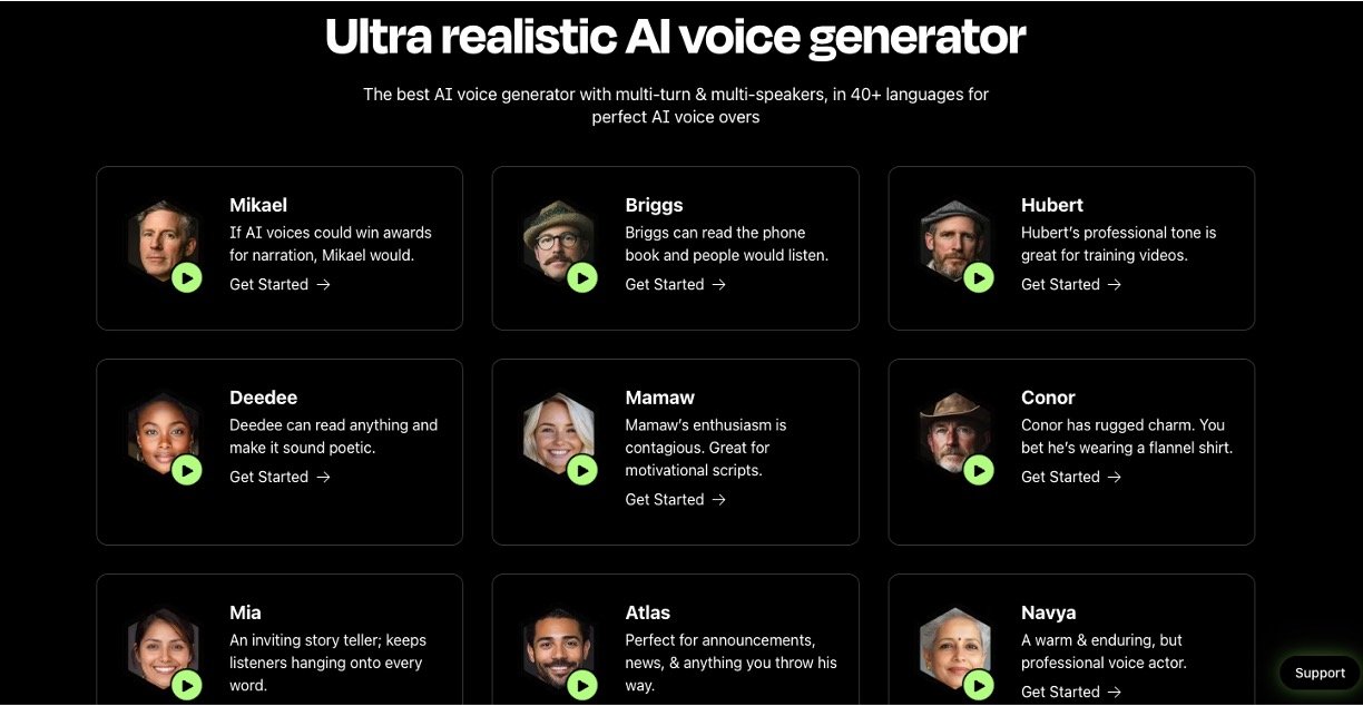Ultra-realistic AI voice generation: Produces natural, expressive voices with subtle human nuances in 900+ voices across 142+ languages and accents.