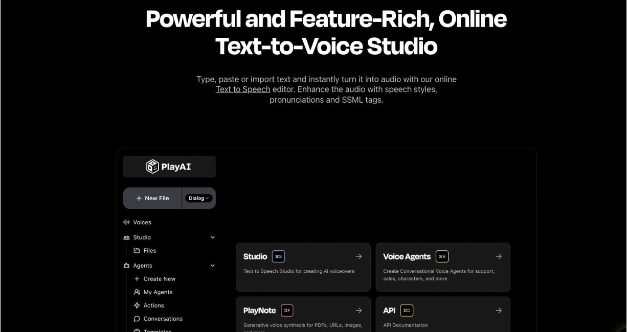 Play AI is an AI voice agent and text-to-speech platform designed to turn written text into lifelike, human-quality audio in seconds. Using cutting-edge AI and machine learning, it offers a massive library of voices, multilingual support, and tools for customizing pitch, speed, and emotion. Its latest feature—AI voice agents—enables interactive, conversational voice experiences, making Play.ht valuable for anyone looking to create engaging audio content for business, education, entertainment, or accessibility. Play.ht’s simple, intuitive interface ensures even users with no tech experience can generate impressive results.