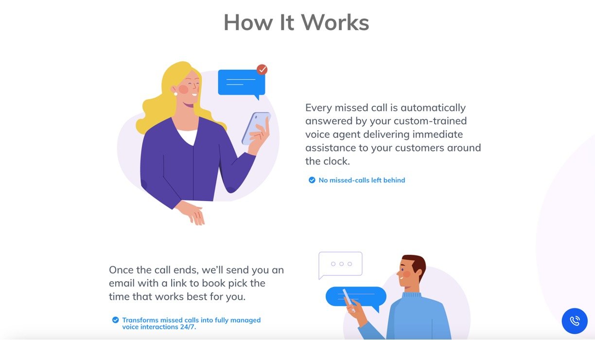 24/7 AI-powered call answering that converts missed calls to managed voice or text interactions.