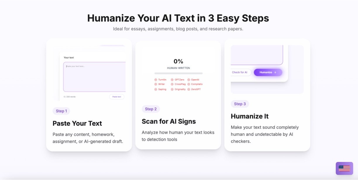 PurpleWrite is an AI-powered tool designed to transform AI-generated text into natural, human-like writing that is undetectable by AI detection tools. This ensures that essays, assignments, blog posts, research papers, and other written content appear fully human and authentic. Users can paste any content, including AI drafts or homework, and PurpleWrite analyzes it for artificial intelligence characteristics. It then rewrites the text to make it sound completely natural, improving flow, tone, and readability while helping users pass AI-based plagiarism or detection checks.