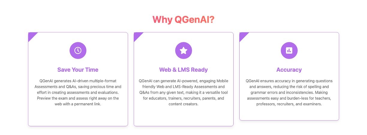 QGenAI is a super-smart AI tool that takes any piece of text you give it, like a lesson plan or article, and instantly creates quizzes, exams, and questions with answers. Perfect for busy teachers, parents, or anyone who wants to test knowledge without spending hours writing questions by hand. Just paste your text, pick the type, and get ready-to-use assessments in seconds – it's that easy and accurate.