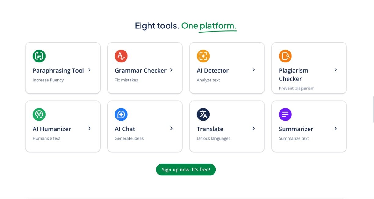 Advanced Paraphrasing: Offers multiple modes (e.g., Formal, Creative, Academic) to reshape sentences for clarity, style, or tone without changing meaning.