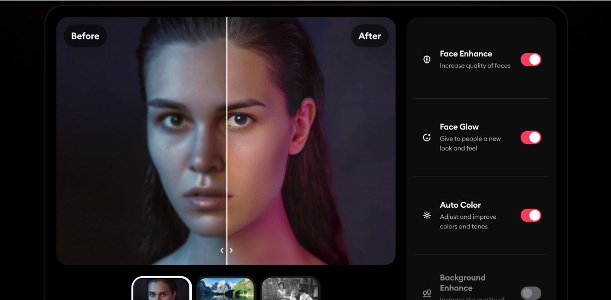 • Restore treasured family photos, vintage portraits, or personal memories to modern, beautiful quality.