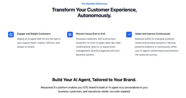 ResponseCX is an AI-driven platform tailored for Direct-to-Consumer (DTC) brands, particularly those operating on Shopify. It enables businesses to create autonomous AI agents that handle customer interactions, resolve complex issues, and drive measurable outcomes. With a focus on seamless integration and brand consistency, ResponseCX ensures that AI agents reflect the unique voice and policies of each brand, providing 24/7 support and enhancing customer satisfaction.