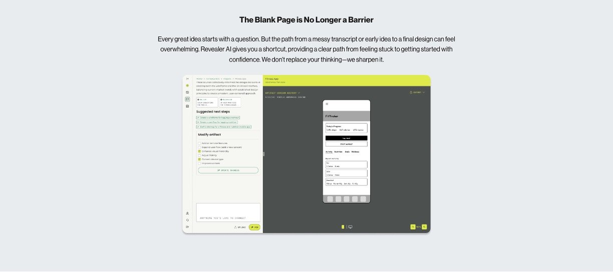 Revealer AI is a UX discovery and intelligence platform that transforms raw research, transcripts, and early concepts into early design artifacts such as wireframes, personas, and UX roadmaps. It acts as a co-creator that reduces the pain of the blank page, helping teams move from feeling stuck to getting started with clarity and speed while still relying on their own thinking. Designed for researchers, designers, and product teams, it gives a structured, AI-assisted way to go from scattered inputs to concrete, shareable outputs.