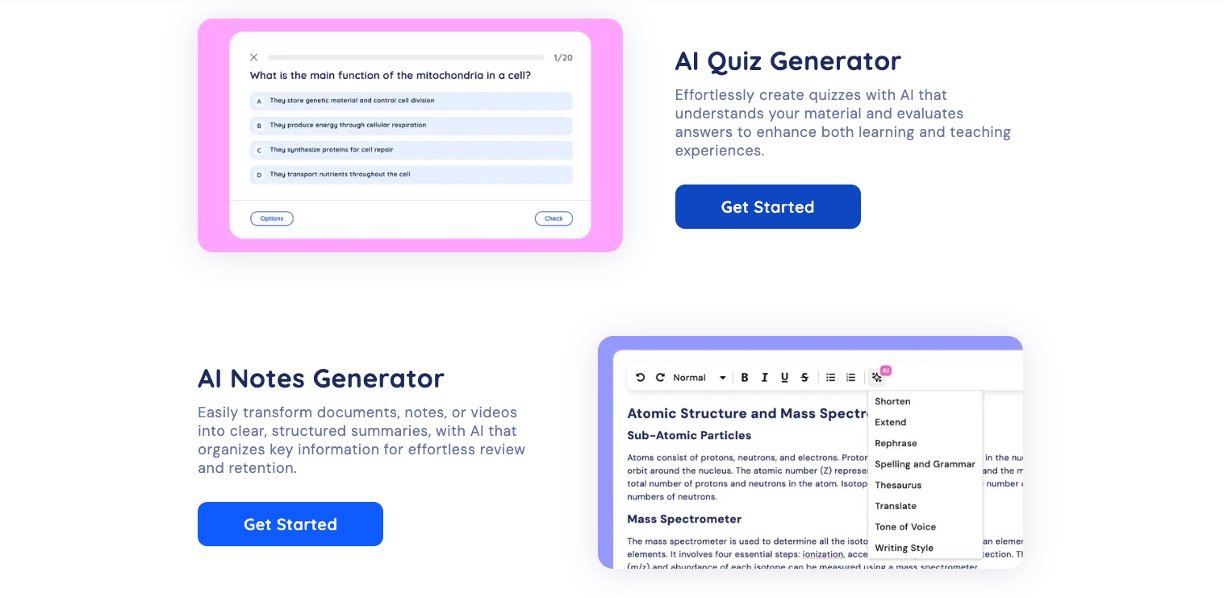 Upload notes, PDFs, PowerPoints, images, or handwritten content to generate quizzes automatically.