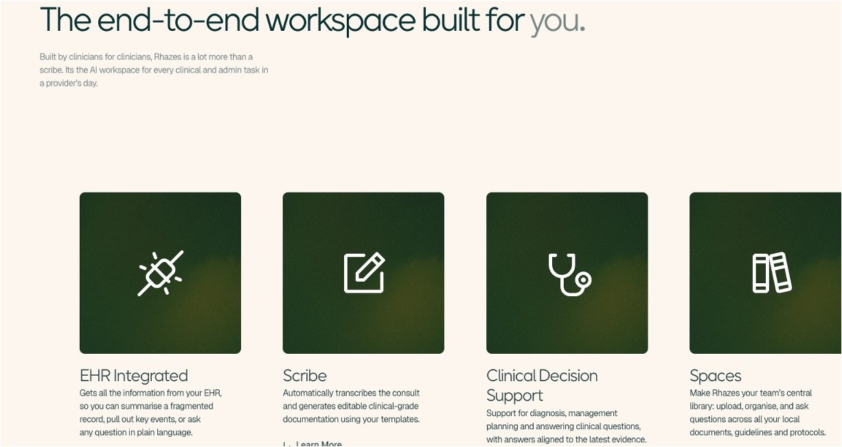 Rhazes AI brings every clinical AI tool into one easy platform, built by doctors for doctors. It pulls info from your electronic health records (EHR), writes notes from patient talks, suggests diagnoses based on the newest medical facts, organizes your documents like a personal library, codes bills accurately, and checks records fast. Used by thousands of clinicians worldwide, it cuts admin time so you focus on patients, all while keeping data super secure with top privacy standards like HIPAA and GDPR.