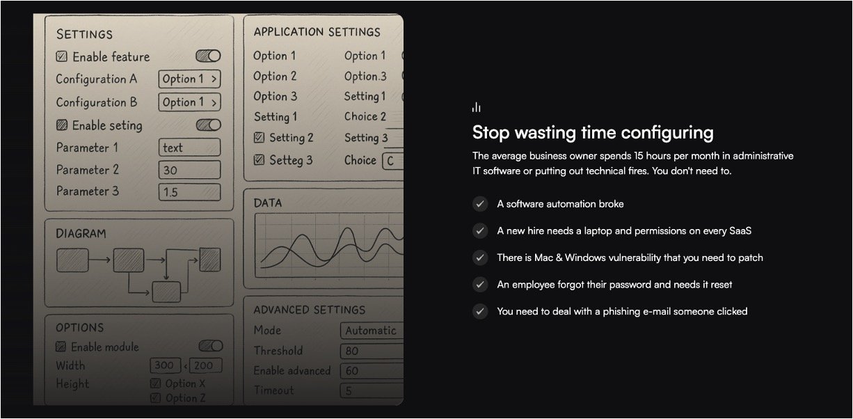 A business owner wants to stop spending hours each month dealing with broken software, password resets, and other IT fires, and hands all of this off to Rollout.