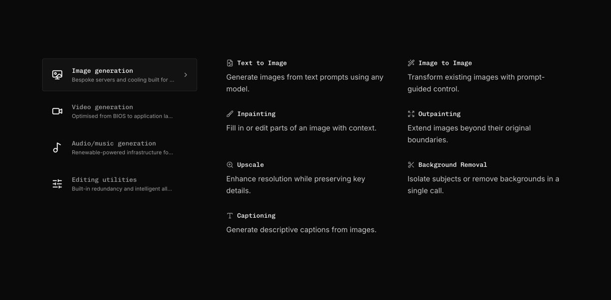 • One API, endless AI models for instant, scalable innovation.