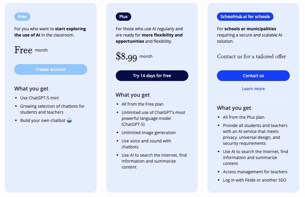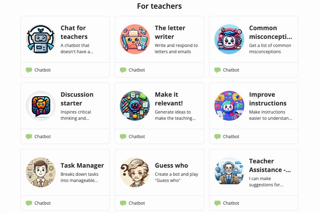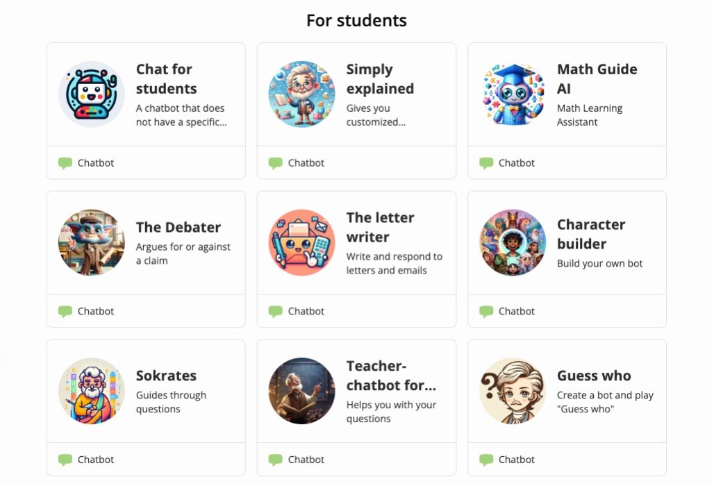 Tools for creating custom chatbots to support varied learning activities without coding.