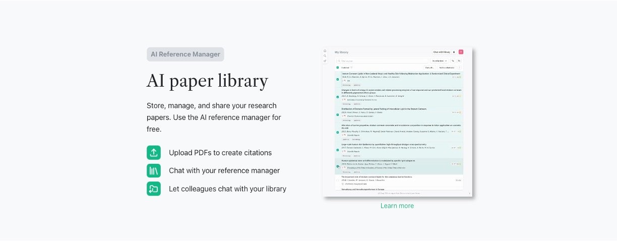 AI reference manager: Store up to 4,000 PDFs, chat with your library, share with teams, and get deep analyses.