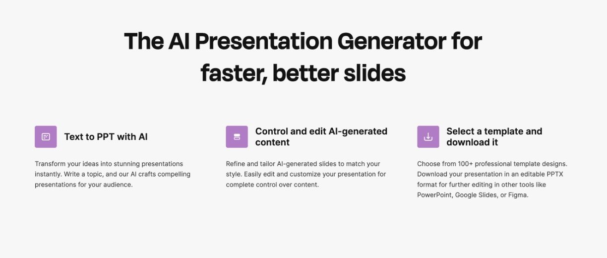 • Effortless AI-Powered Slide Creation for Stunning Presentations.