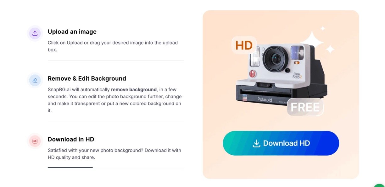SnapBG AI is a powerful AI-driven online tool that removes backgrounds from images quickly and accurately without any need for manual editing or software installation. It uses advanced algorithms to detect objects and foregrounds, including complex edges like hair and fur, delivering high-quality transparent background images suitable for e-commerce, social media, marketing, and creative projects. The platform also offers manual refinement tools, a rich selection of background templates, and a full editing suite to customize images further, all accessible instantly with no account required.