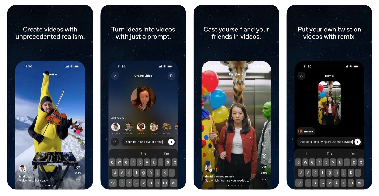 • "Cameo" feature to authenticate and embed personal likenesses into video scenes.