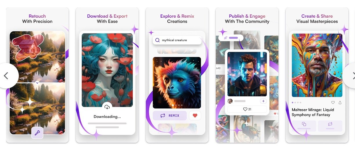 Starryai is a highly customizable AI art generator app available on Android and iOS that transforms simple text prompts into stunning, unique digital artwork in minutes. Designed for all skill levels, it features over 1000 artistic styles and supports image generation, photo-to-art transformations, and anime-inspired creations. Starryai provides advanced options like image upscaling, in-painting, bulk creation, and style fine-tuning, making it a versatile tool for creators, marketers, and art enthusiasts alike. Users get full ownership of their creations for unlimited personal or commercial use.