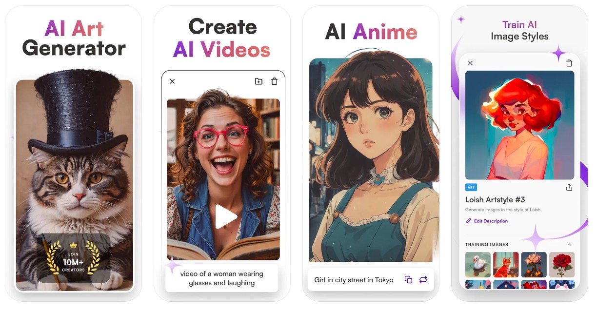 Over 1000 artistic styles and customizable settings for size, aspect ratio, and evolution.