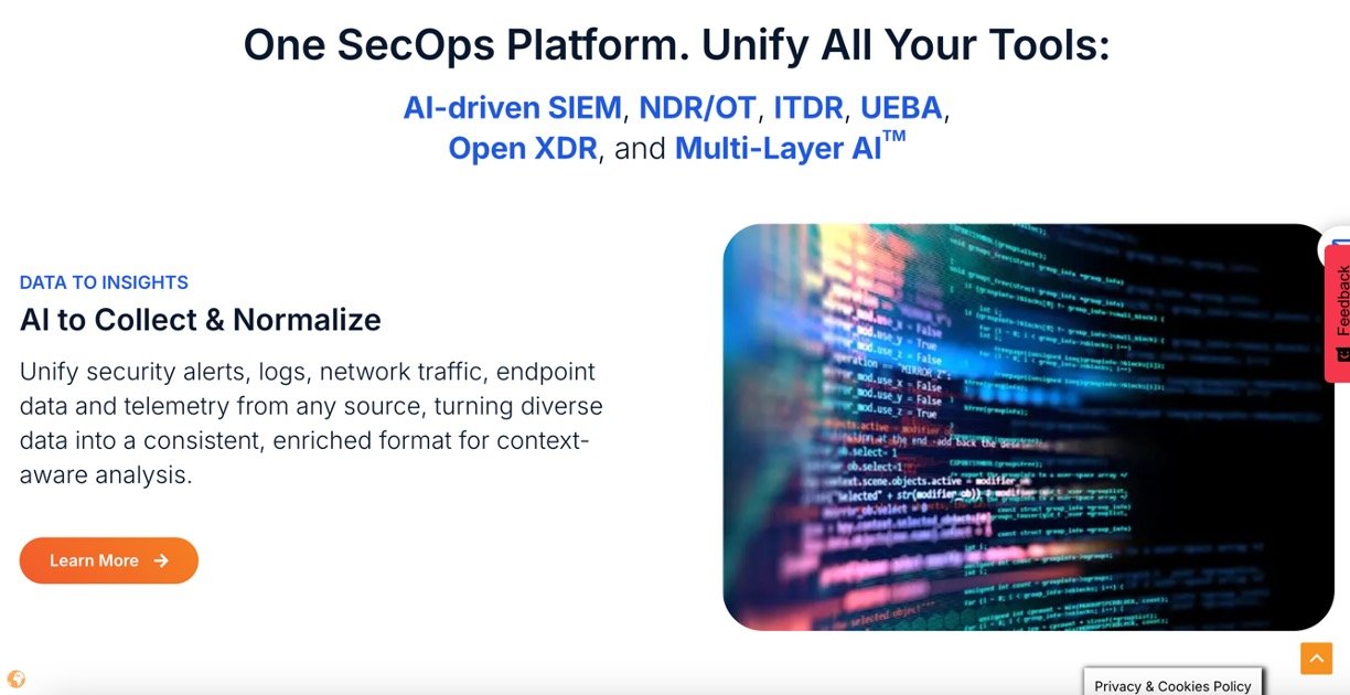 • AI to Collect & Normalize: Gathers security alerts, logs, network data, and more from anywhere, turning messy info into easy-to-use insights.