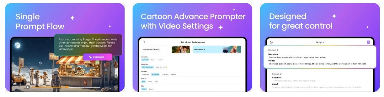 • AI-driven text-to-video generation with intelligent scene and asset selection.