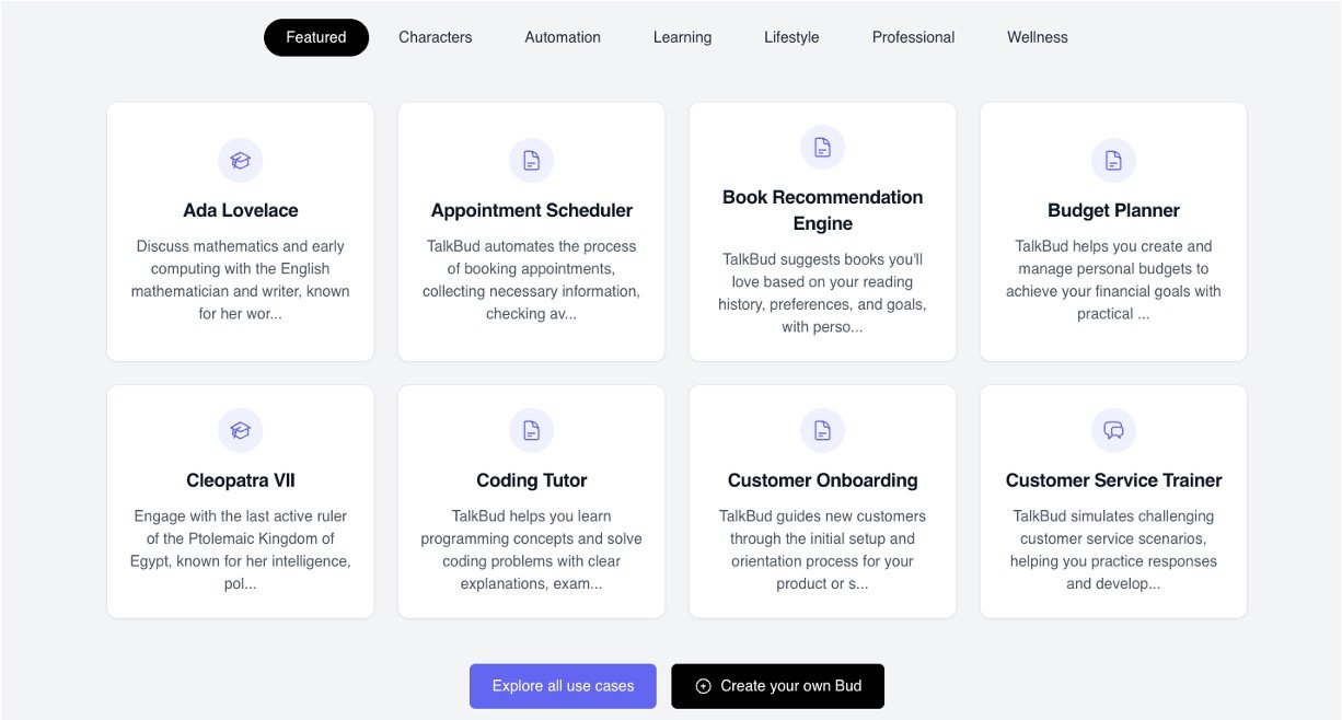 TalkBud is an intelligent AI voice companion designed to engage in natural, real-time conversations with human-like depth and nuance. It supports making and receiving calls, scheduling appointments, and participating in multi-speaker conversations while maintaining context. TalkBud can integrate with your business tools and knowledge bases, providing personalized assistance and seamless interaction. Designed for broad use cases—from customer service to personal productivity—TalkBud offers an intuitive experience with continuous learning to improve over time.