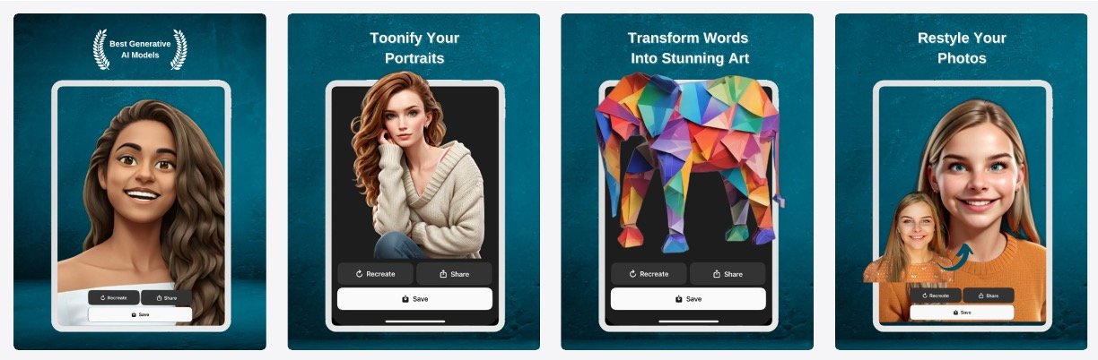 • Cartoonify Portraits: Turn selfies into fun cartoons, ideal for social media profiles.