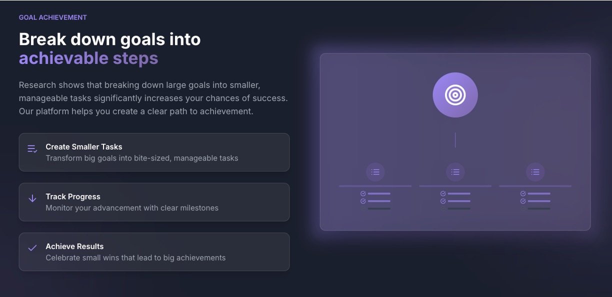 • AI-powered breakdown of goals into smaller, manageable tasks.