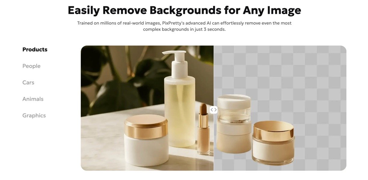 PixPretty is an AI-powered photo editing tool that helps users easily remove backgrounds, resize images, and enhance photos online.