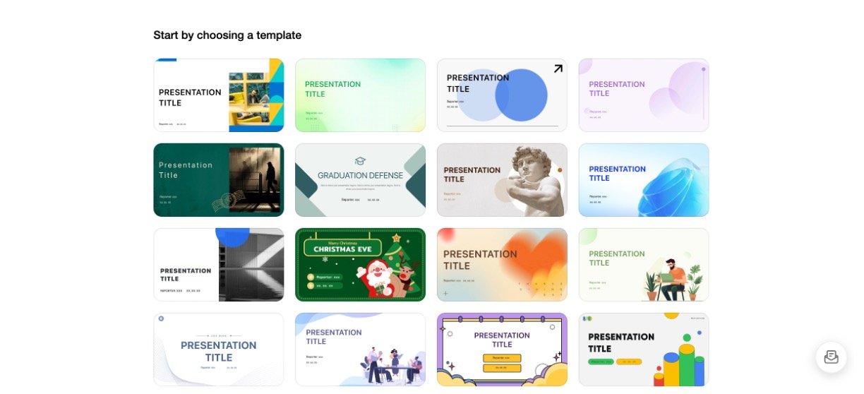 Instant generation of complete, professional presentations from minimal input.