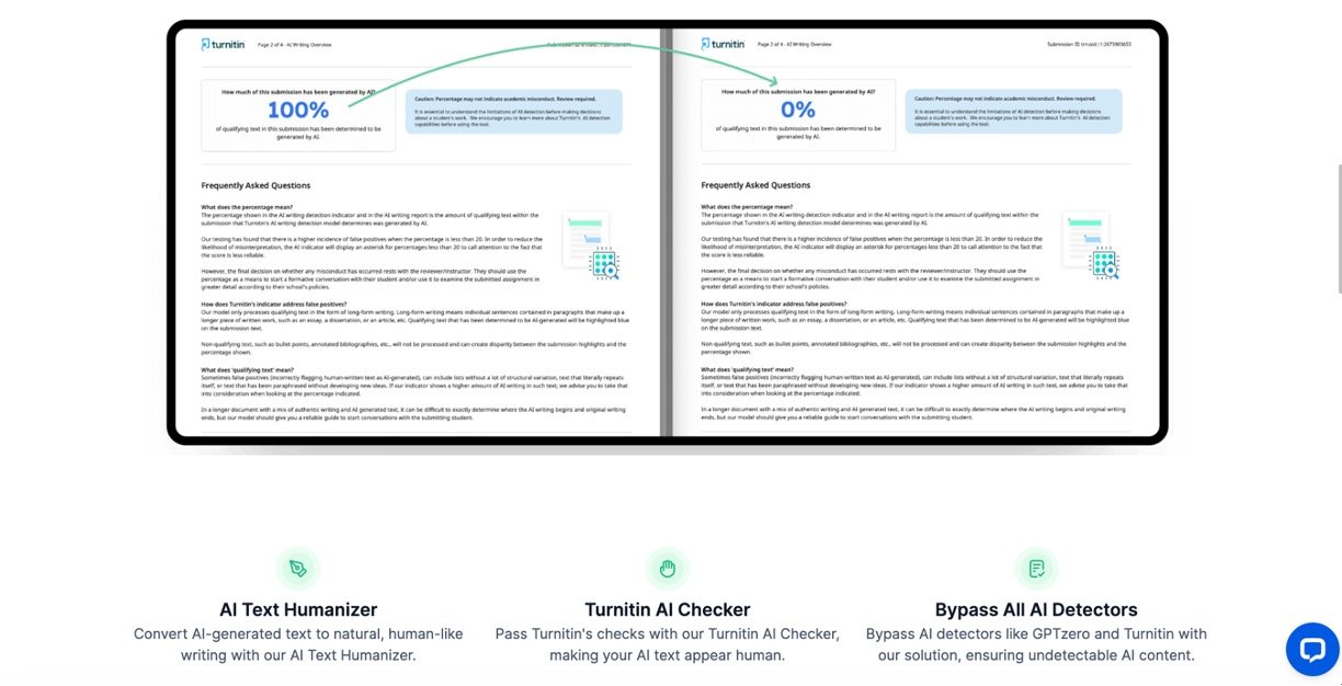 Bypasses top detectors: Works against tools like Turnitin and GPTZero for clean, human scores.