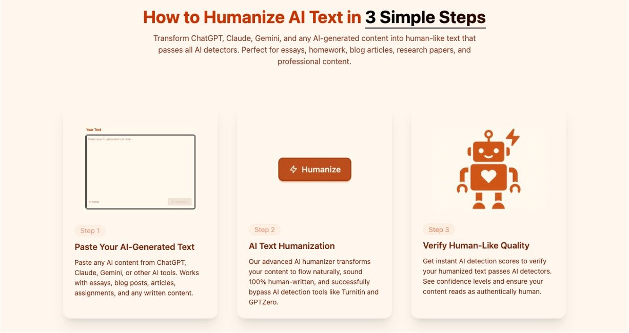 Compatibility with text from any large language model including ChatGPT, Claude, Gemini, Jasper, and Copy.ai.
