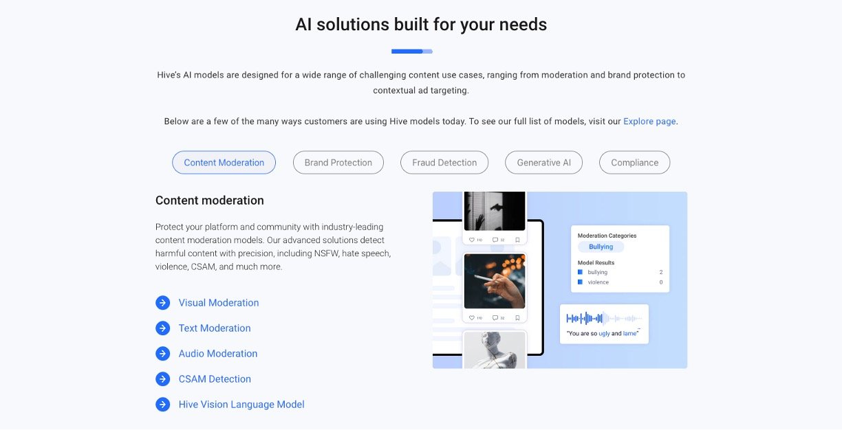 Advanced content moderation detects NSFW, hate speech, violence, and CSAM across images, text, and audio.