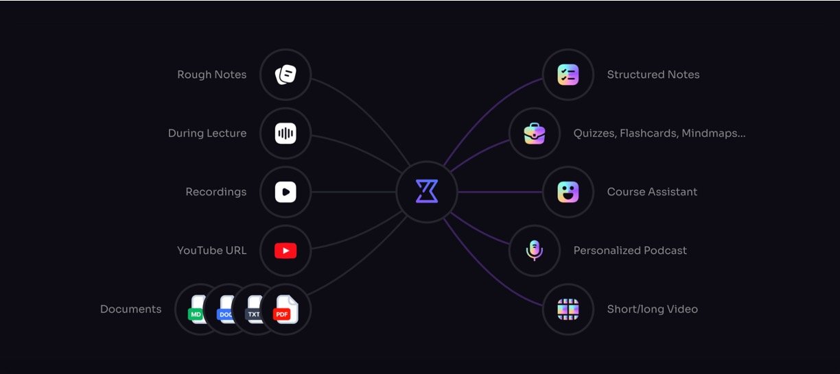 Generate quizzes, flashcards, mindmaps, and chat with an AI tutor that knows your notes inside out.