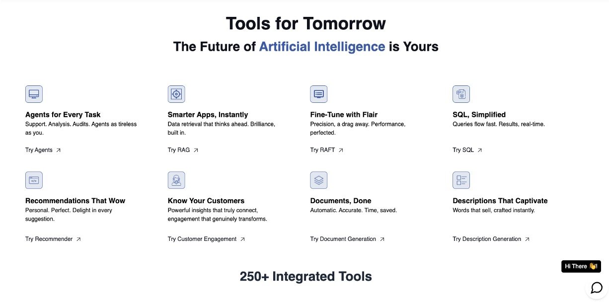 Pre-Integrated AI Models: Supports popular AI models like OpenAI, Gemini, Llama, and Mistral, enabling quick deployment.