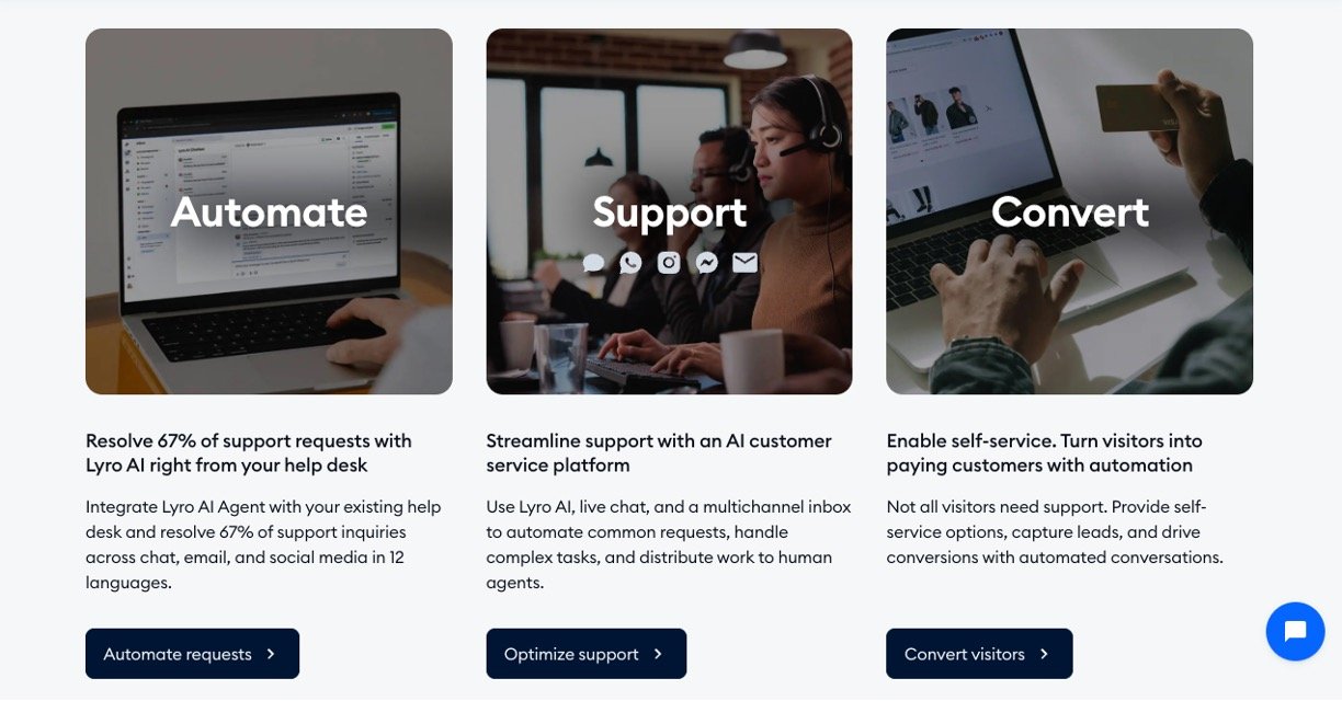 • Lyro AI Agent delivers fast, accurate responses using your FAQs and knowledge base