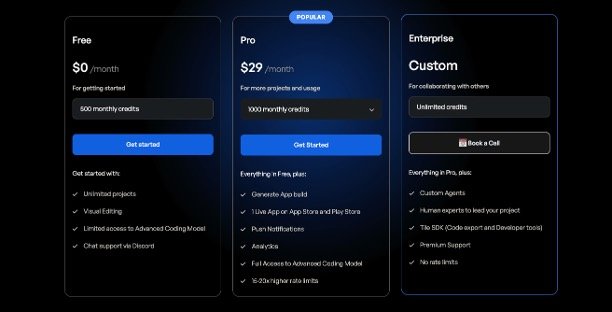 • AI agents that automatically handle backends like authentication, payments (Stripe), databases (Supabase), and more, so apps work right out of the box.