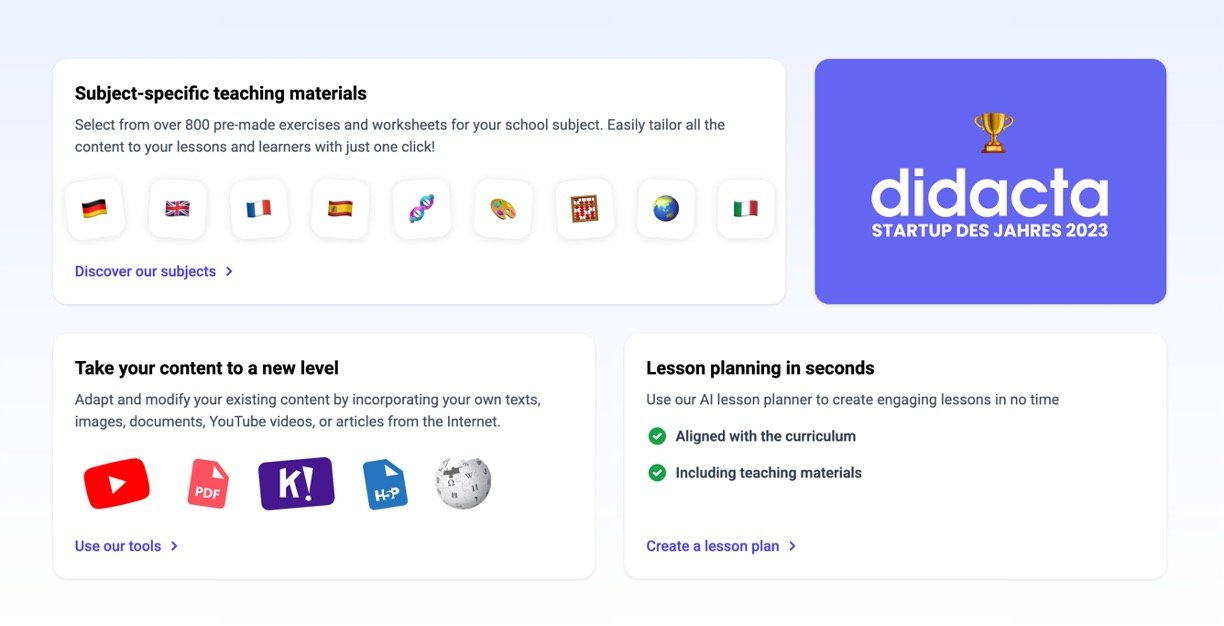 • AI Lesson Planner: Quickly generates curriculum-aligned lesson plans including exercises and worksheets in seconds.