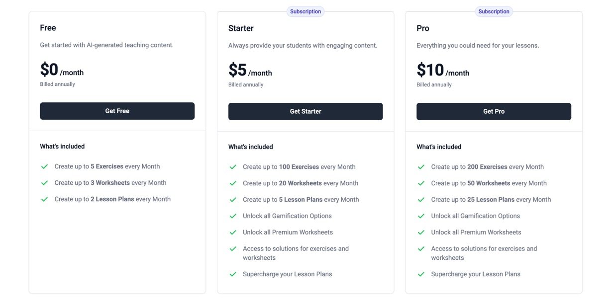 • Extensive Ready-Made Materials: Access over 800 customizable teaching exercises and worksheets across various subjects.