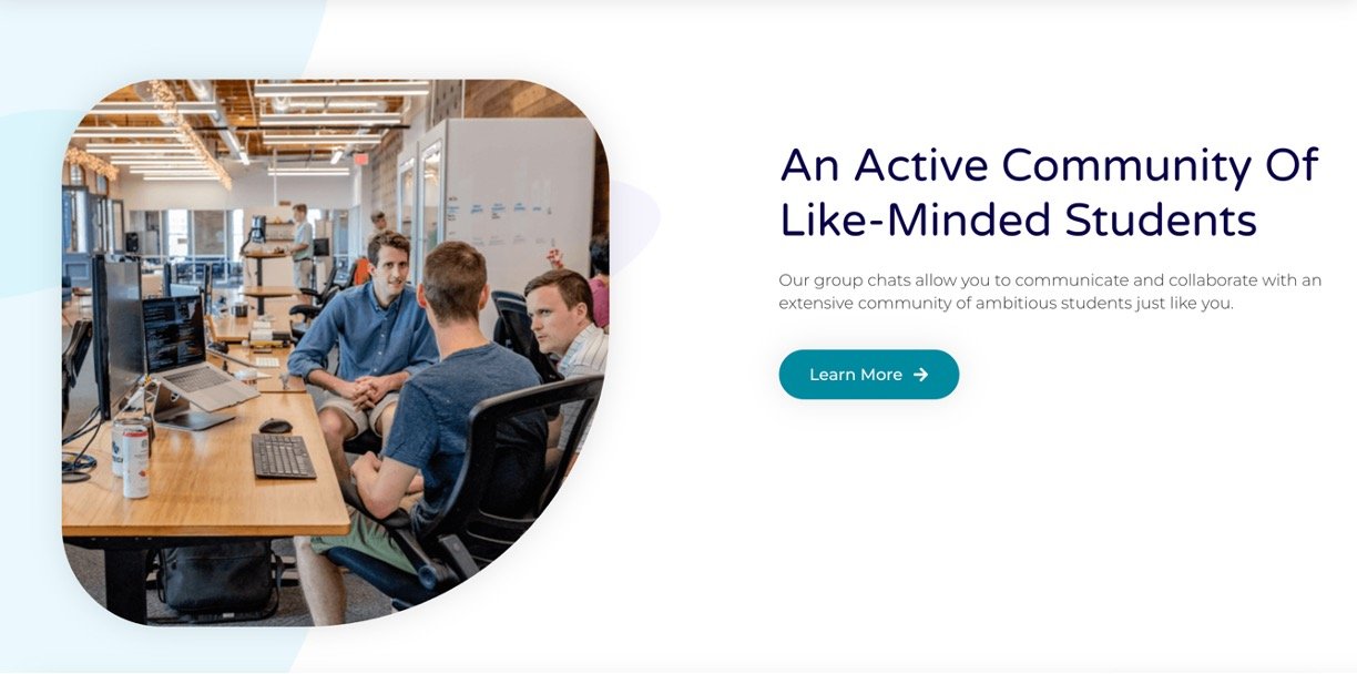 • Active student community with popular group chats to discuss opportunities and career tips.