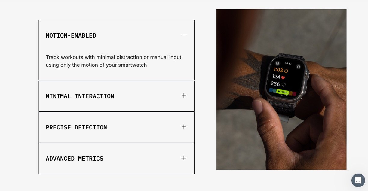 • Hands-free tracking of a wide variety of strength training exercises for accurate progress logs.