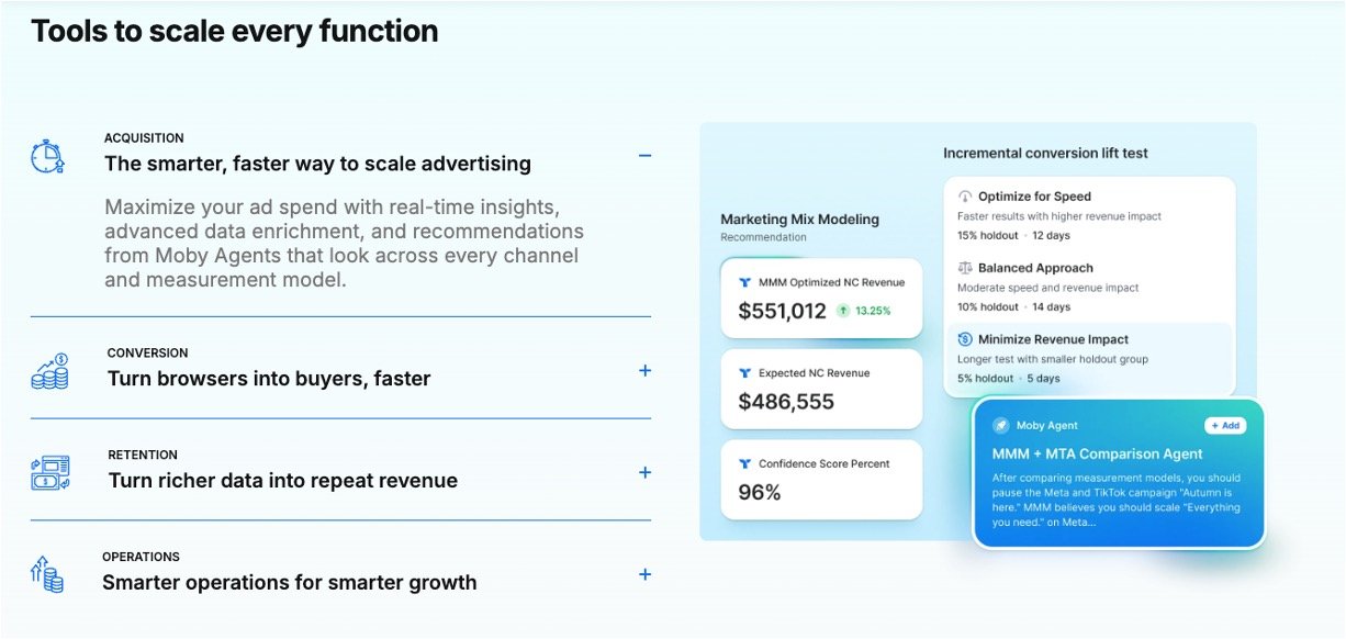 AI-powered assistant (Moby) that provides instant answers, reports, and forecasts from unified ecommerce data.
