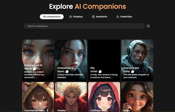 Engage with AI companions for entertainment, roleplaying, and storytelling.
