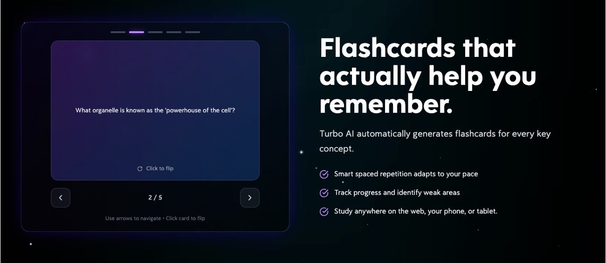 Turbo AI is an AI-powered study platform designed to transform diverse learning materials like lectures, PDFs, videos, and audio into organized, editable notes, interactive flashcards, quizzes, and even podcast-style audio. It supports inputs from many formats and creates study resources in a single collaborative workspace accessible across web and mobile devices. Turbo AI aims to make learning more efficient by automating the heavy lifting of information processing while keeping users actively engaged in their learning process through customizable notes and interactive tools.