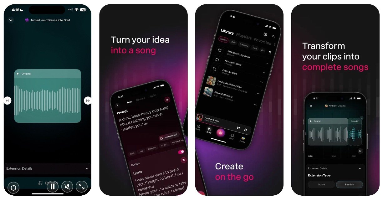 Audio Upload & Remix (Pro): Import voice memos, samples, or loops to transform into full musical pieces.