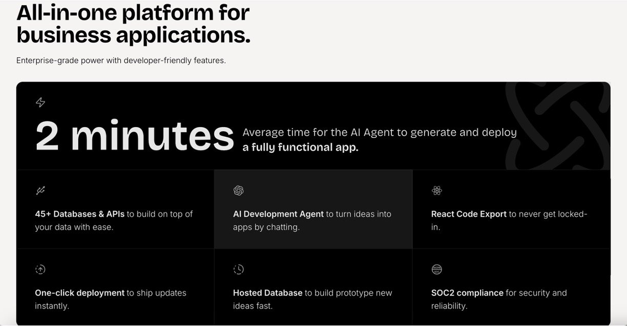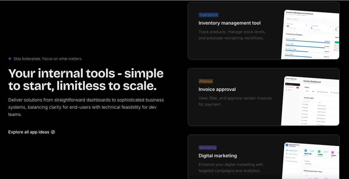 AI agent builds full apps from plain text prompts, like "track my inventory," in minutes.