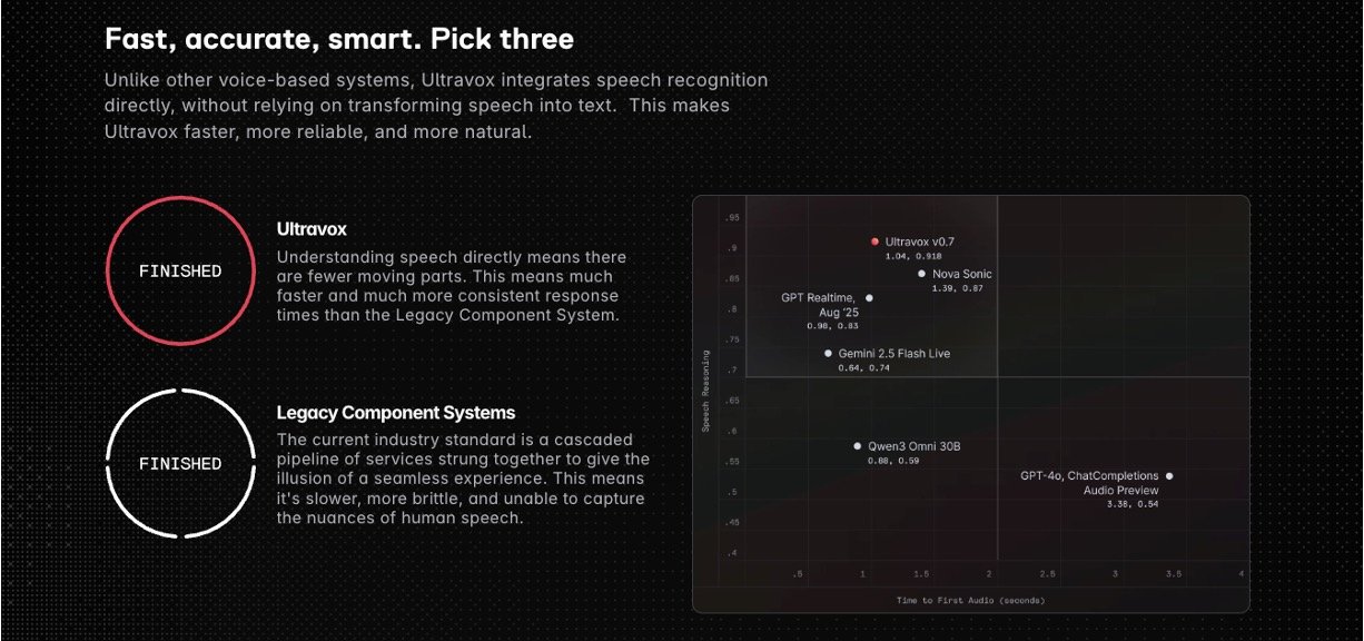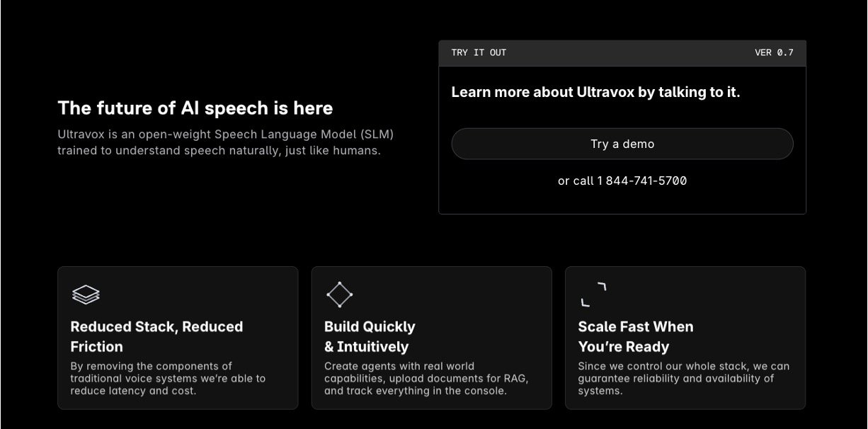 Ultravox AI brings the future of voice AI right to your fingertips with its open-weight Speech Language Model (SLM) that listens and understands speech just like a human does. Forget clunky systems that convert speech to text first – Ultravox handles audio directly for quicker, more reliable chats. Whether you're building simple voice agents or scaling up, its simple console lets you upload docs, add smarts, and track everything easily, all at a low cost starting free for the first 30 minutes.